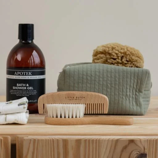 This gift set has a beautiful natural wood look. Also very nice to give as a maternity gift.