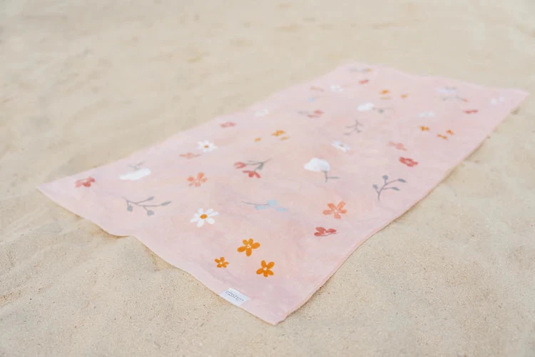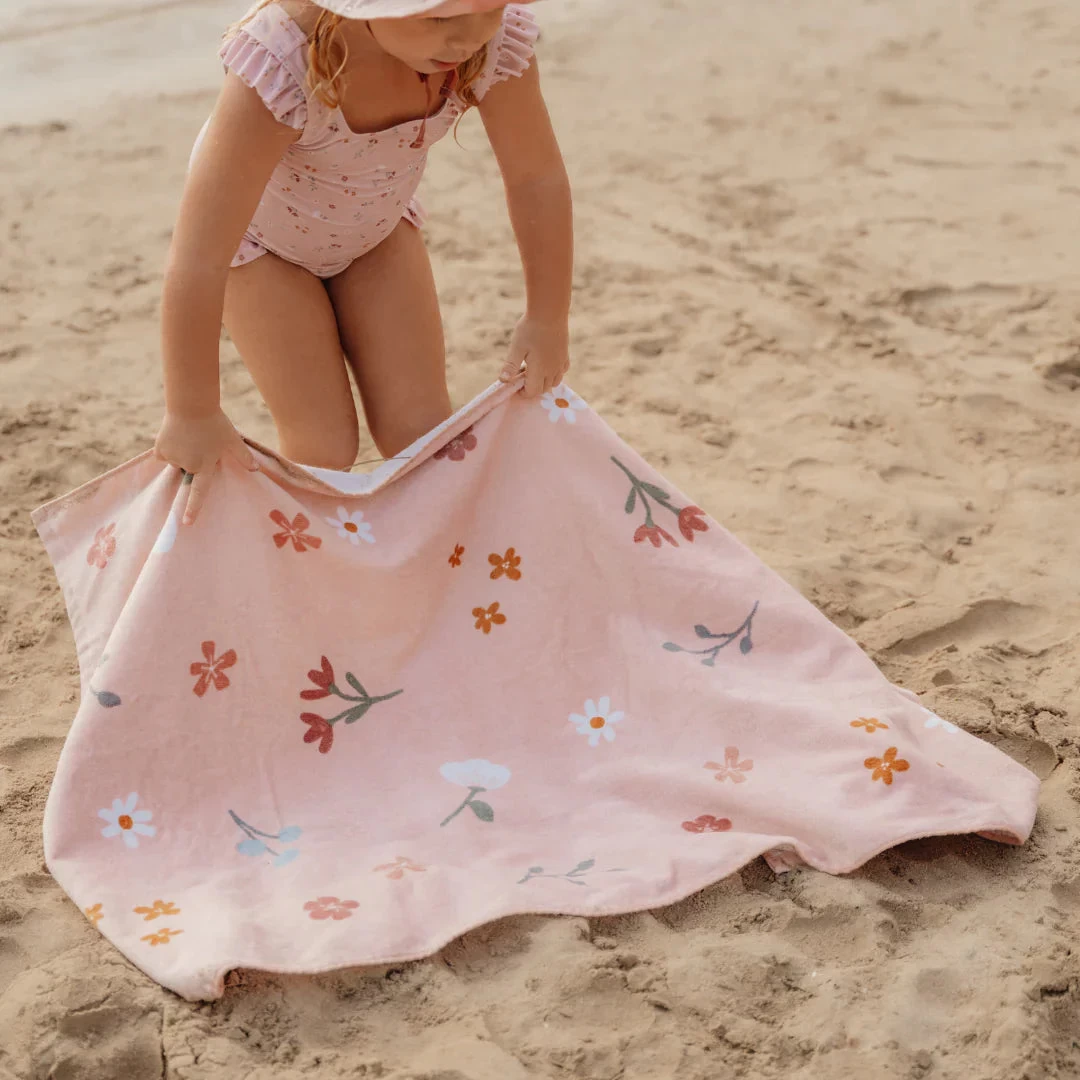 Wrap to dry! After splashing around the water this bath towel awaits to dry you off and give you warmth and comfort. The lovely Flowers & Butterflies design will make you enjoy the comfort of the towel even more. At the beach or at home, this bath towel is an absolute necessity after a dip in the water. The colourful print and high quality fabric of 100 % cotton, will feel like a soft hug enchanted with the most lovely flowers. Matching the towel with Flowers & Butterflies beachwear or inflatables make the towel and your little one even more cute.