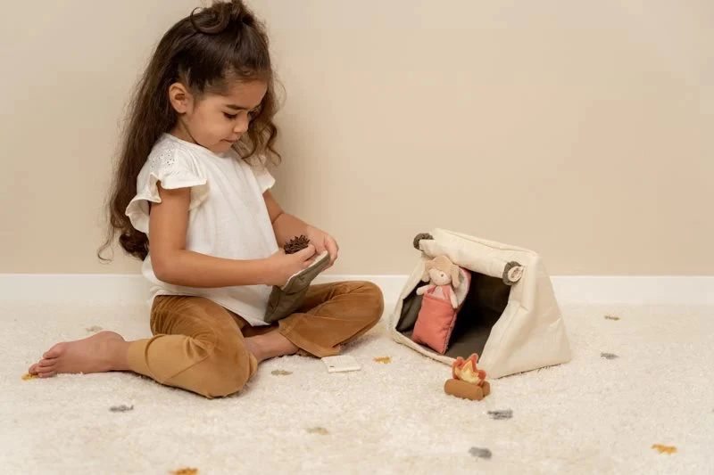 This doll camping playset will encourage lots of hours of play pretend. The tent can be opened and closed and fits both dolls in their sleeping bags. The playset will encourage your little one to imagine the most exciting adventures of camping in the woods, on the beach or on the moon! Happy camping!!