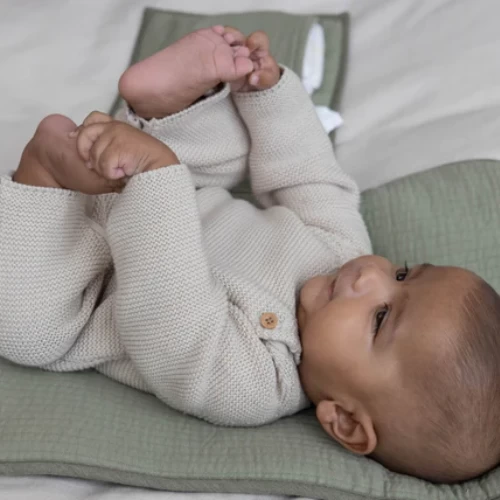 We love to design clothes that bring comfort and ease to your everyday family life. Get your little one ready in a snap with this knitted One-Piece Suit. It will keep your baby cosy no matter what the day brings. The sand-hued style staple is detailed with wooden buttons at the raglan sleeves and a patch pocket on the front.