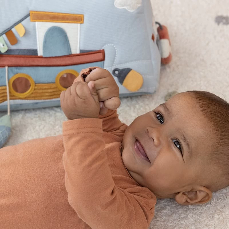 Rendered in an array of appealing hues, this super-soft Activity Triangle will trigger your baby’s curiosity. There’s so much to discover during tummy time! Every side features a different activity and is dressed in various textures, shapes and stimulating features.