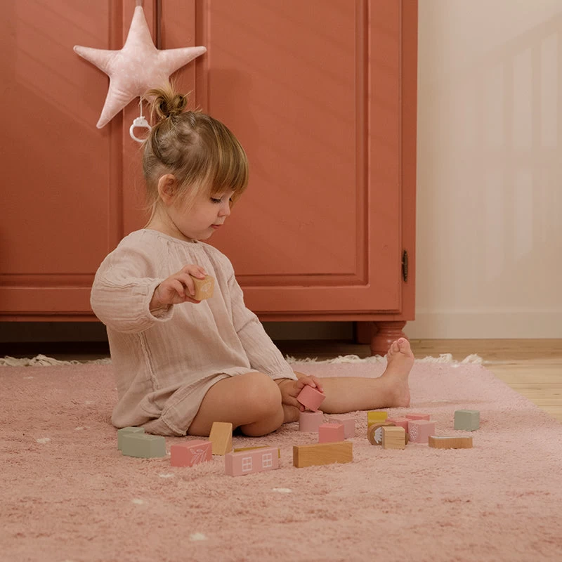 These wooden blocks in tons are indispensable. The barrel contains no less than 50 wooden blocks with beautiful prints such as Little Goose and various flowers from the Wild Flowers collection. Stack the different blocks to build the nicest figures or towers. The blocks guarantee a lot of building fun and can easily be stored in the barrel!