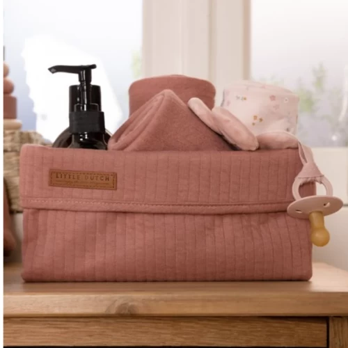 No more nappies, tubes and bottles lying around: with this Little Dutch storage basket the changing table stays tidy and organised! The Little Dutch storage basket is beautifully finished and offers a place to store all the products you need daily to take care of your baby. With the cool leather label and the beautiful print, it is a remarkable accessory in every nursery.