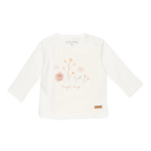 Add a touch of cuteness to your baby’s wardrobe with this captivating T-shirt. It’s enhanced with a flower print on the front, alongside an uplifting phrase that reads ‘Bright Days’. The T-shirt has long sleeves and convenient snap buttons on the shoulder. Maintain the bright mood by styling it with soft-hued bottoms.
