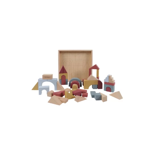 Create the most wonderful figures and buildings with these nostalgic, yet modern building blocks from Little Dutch’s Pure & Nature Collection. The blocks have different geometrical shapes and are stored in their own open wooden box. With these coloured blocks, children can use their imagination to invent whatever comes to their mind. This promotes hand-eye coordination and fine motor skills. The set encourages children’s play development and guarantees hours of building fun.